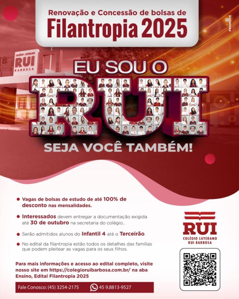 No edital da filantropia estão todos os detalhes das famílias que podem pleitear as vagas para os seus filhos. Para ter acesso ao edital completo basta acessar o site do colégio na aba ensino, ou então ligar na secretaria pelo telefone (45) 3254-2175.