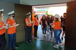 Com som ambiente simulando o espaço de um aeroporto, inclusive com chamadas para embarque, cada aluno recebeu sua passagem das mãos de “comissários de bordo” e “pilotos”, fez “check-in” e se encaminhou para sua “aeronave” no voo 2022.