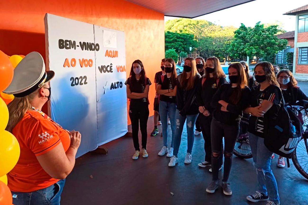 Foi exatamente assim que os alunos do Colégio Evangélico Martin Luther, de Marechal Cândido Rondon, foram recebidos por todo o corpo docente, coordenações e direção no primeiro dia letivo de 2022, na última segunda-feira (07), seguindo o tema da campanha de matrículas deste ano: Aqui você voa + alto.