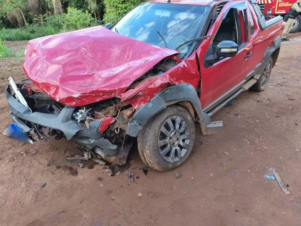 A mulher estava em um Fiat Strada vermelho que colidiu com uma caminhonete Ford Ranger.