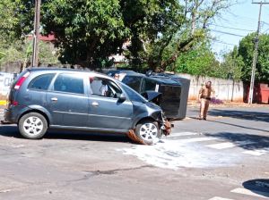 A Polícia Militar (PM) de Marechal Cândido Rondon registrou, por volta das 14 horas desta quarta-feira (1º), um acidente de trânsito nas esquinas das ruas Pernambuco e Mem de Sá. Segundo informações apuradas, a colisão envolveu uma camionete Toyota Hilux e uma Meriva.