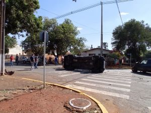 A Hilux teria invadido a preferencial e colidido com o outro veículo, vindo a tombar depois do impacto. Apesar do ocorrido, os envolvidos não tiveram ferimentos.