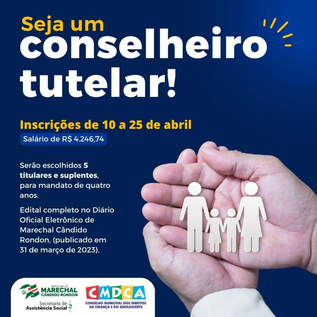 Os interessados em atuar no Conselho Tutelar de Marechal Cândido Rondon, para o quadriênio 2024/2028, podem se inscrever a partir desta segunda-feira (10) ao processo de escolha. O prazo segue aberto até as 17 horas do próximo dia 25.