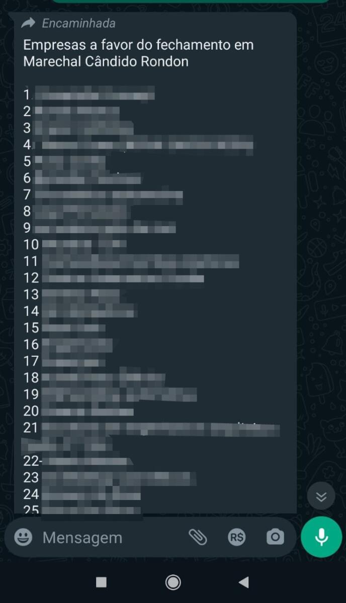 A iniciativa tem sido defendida por empresários de Marechal Cândido Rondon e, desde domingo (06), tem circulado em grupos do WhatsApp uma lista com “empresas a favor do fechamento”.