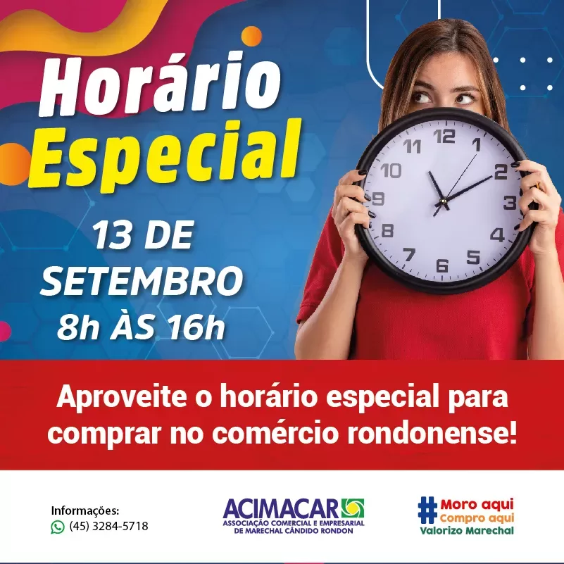 O comércio de Marechal Cândido Rondon terá horário especial de atendimento neste sábado (13). As lojas estarão abertas das 8 às 16 horas, oferecendo mais tempo e comodidade para os consumidores realizarem suas compras.