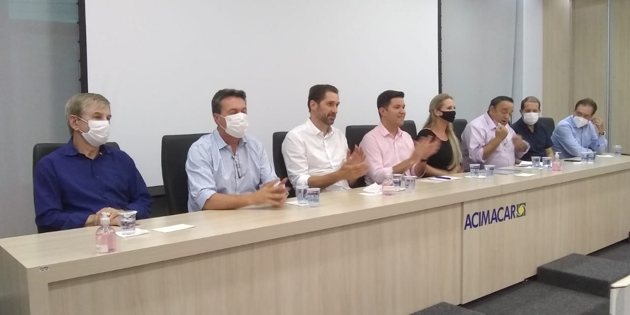 O encontro aconteceu na sede da Associação Comercial e Empresarial (Acimacar) e contou com a presença do deputado estadual, Elio Rusch; secretário de Desenvolvimento Sustentável e Turismo, Marcio Nunes; prefeito de Marechal Rondon, Marcio Rauber; chefe da Casa Civil, Guto Silva; presidente da Acimacar, Carla Rieger; deputado estadual, Hussein Bakri; secretário de Estado de Administração, Marcel Micheletto; e deputado estadual, Ademir Bier empresários e autoridades rondonenses.