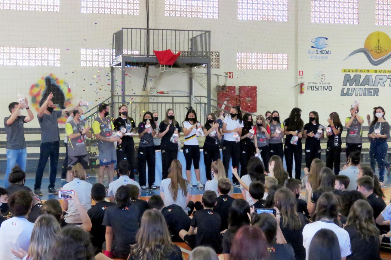 O Colégio Evangélico Martin Luther, de Marechal Cândido Rondon, organizou na manhã desta terça-feira (09) uma grande festa para as atletas do Projeto Feras do Vôlei e do Vôlei Marechal, em alusão aos excelentes resultados obtidos recentemente nos campeonatos estaduais e nacionais em que participaram.