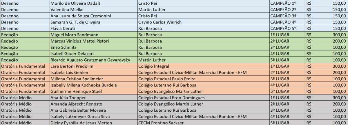 Na segunda-feira, além da entrega de premiação aos ganhadores das categorias redação e desenho, também houve a apresentação dos finalistas na categoria oratória do Ensino Médio e Fundamental.