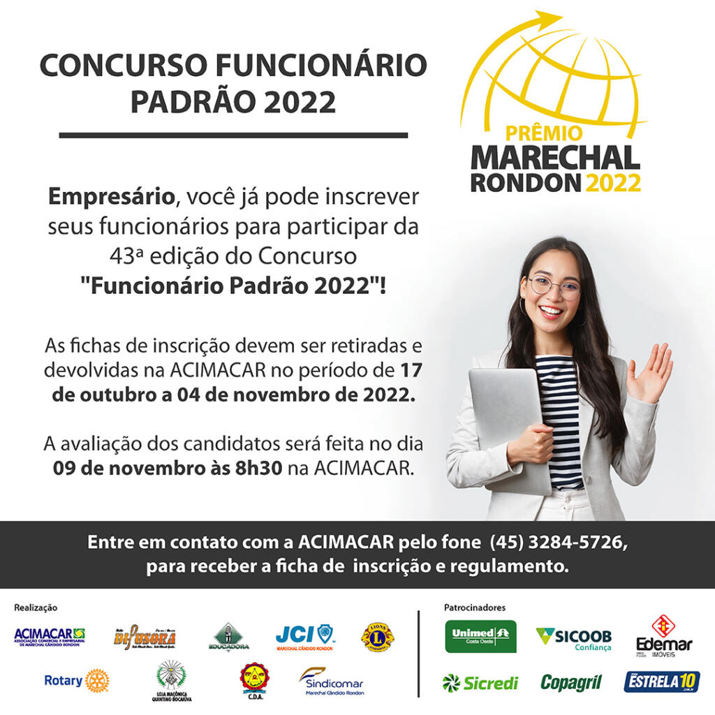 Com o intuito de reconhecer funcionários que se destacam em suas funções, o Concurso Funcionário Padrão, idealizado pelo Rotary Club de Marechal Cândido Rondon, chega à 43ª edição.