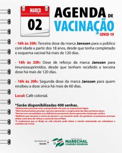 A Secretaria de Saúde de Marechal Cândido Rondon dará sequência nesta quarta-feira (25) à vacinação contra a Covid-19.