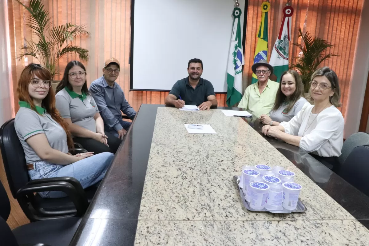 Participaram da assinatura o prefeito Adriano Backes; o presidente da Cooperativa de Agroecologia e da Agricultura Familiar (Coperfam), Herverto Lamb; e o presidente da Associação Central dos Produtores Rurais Ecológicos (Acempre), Plácio Browm. A cerimônia contou ainda com a presença da secretária de Educação, Maria Claudete Kozerski, e das servidoras públicas Jaciara Garcia, Andressa Deicke e Jodele Arndt.