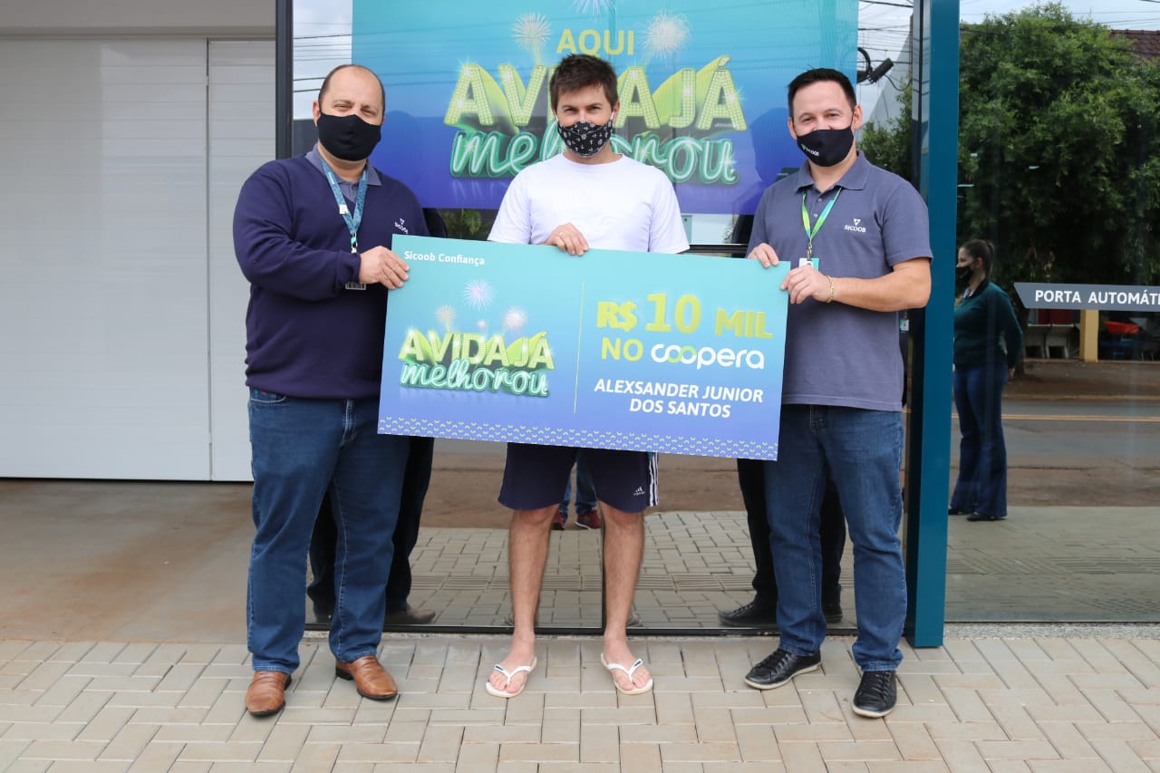 A campanha “Crédito pra vida melhorar” fez um sortudo no Sicoob Confiança. O cooperado Alexsander Junior dos Santos foi premiado com R$ 10 mil que podem ser usados no Coopera.