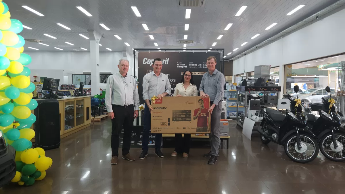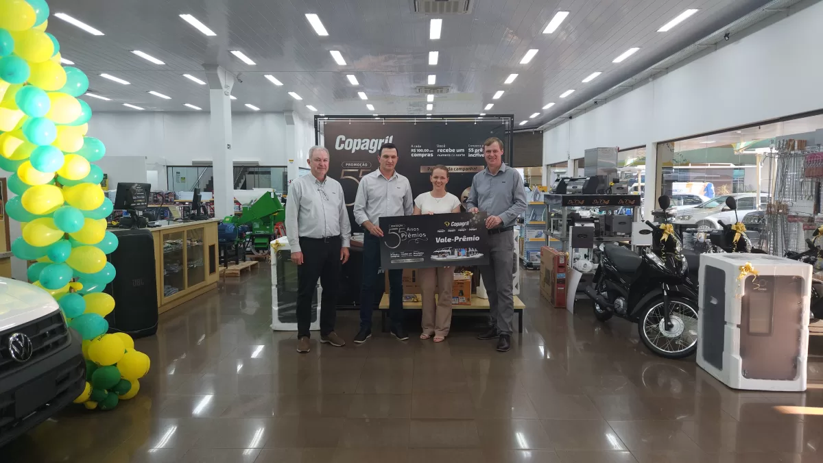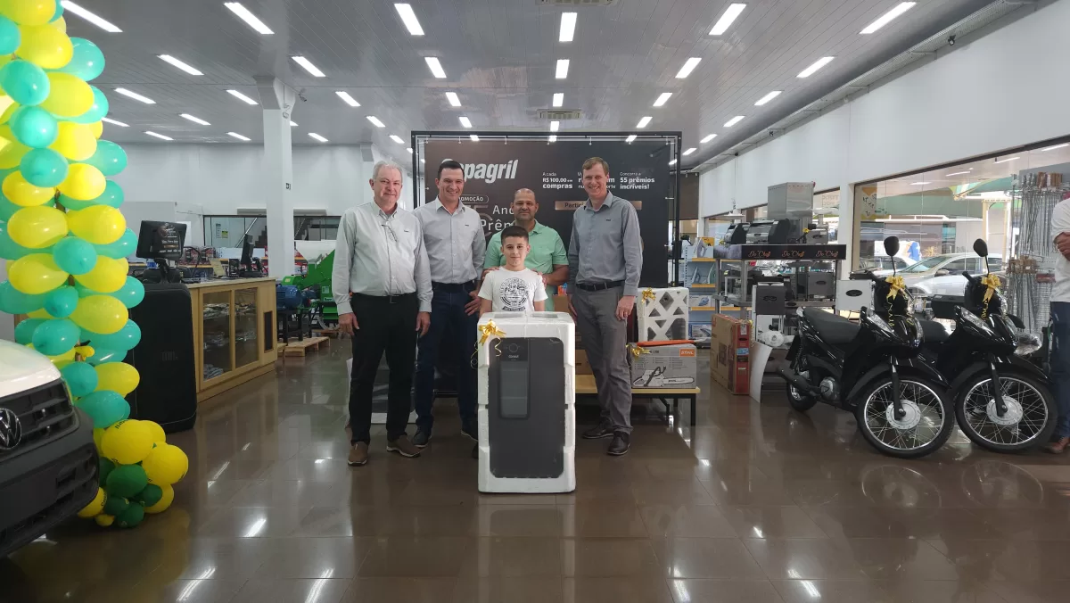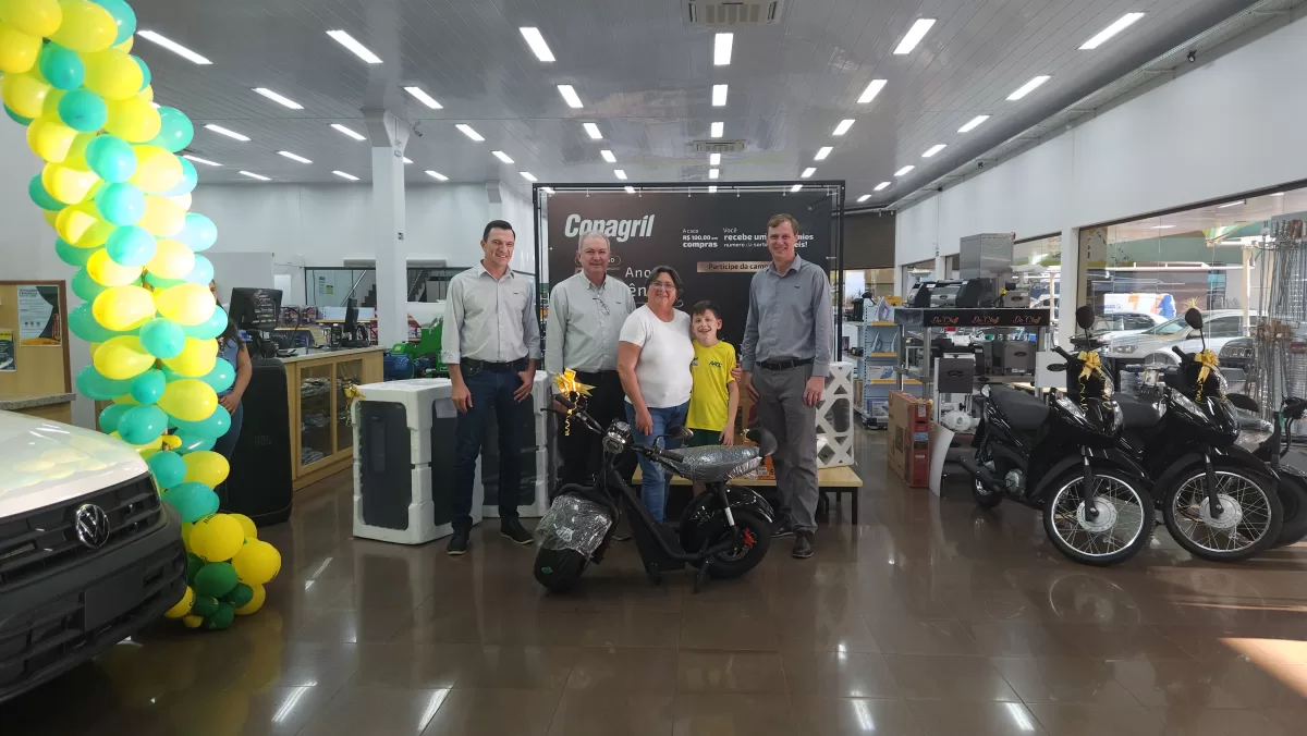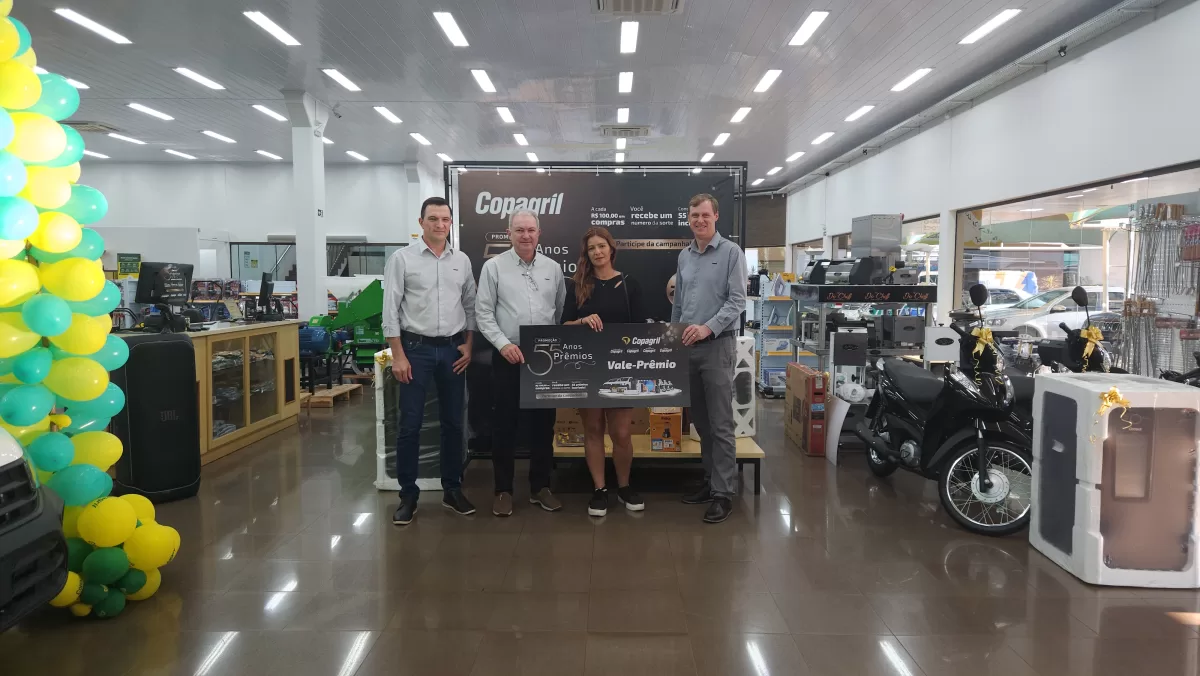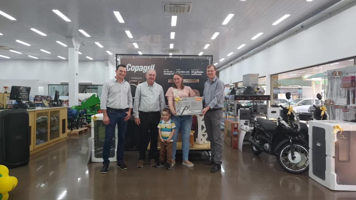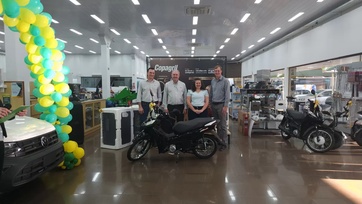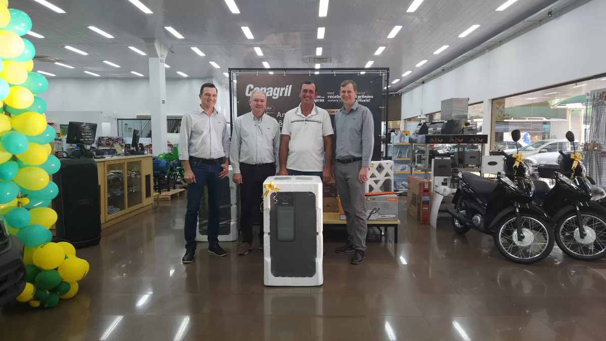 O evento aconteceu na Loja Agropecuária Copagril, em Marechal Cândido Rondon-PR, reunindo o diretor-presidente Eloi Darci Podkowa, o diretor vice-presidente Cesar Luiz Petri, o diretor-secretário Ademir Luis Griep, além dos primeiros contemplados e convidados. Ao todo, 25 prêmios já foram distribuídos, entre motocicletas, motos elétricas, vales-compras, eletrodomésticos e kits práticos para o dia a dia.