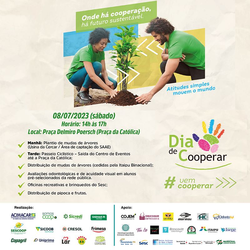 A celebração será uma parceria da Copagril com a Associação Comercial e Empresarial de Marechal Rondon (Acimacar) e outras nove cooperativas do município: Cercar, Cooperagir, Cresol, Sicredi Aliança PR/SP; Frimesa, Sicoob Confiança, Unimed Costa Oeste e Uniprime, e elas prometem realizar um dia interativo e cheio de atividades para toda a família.