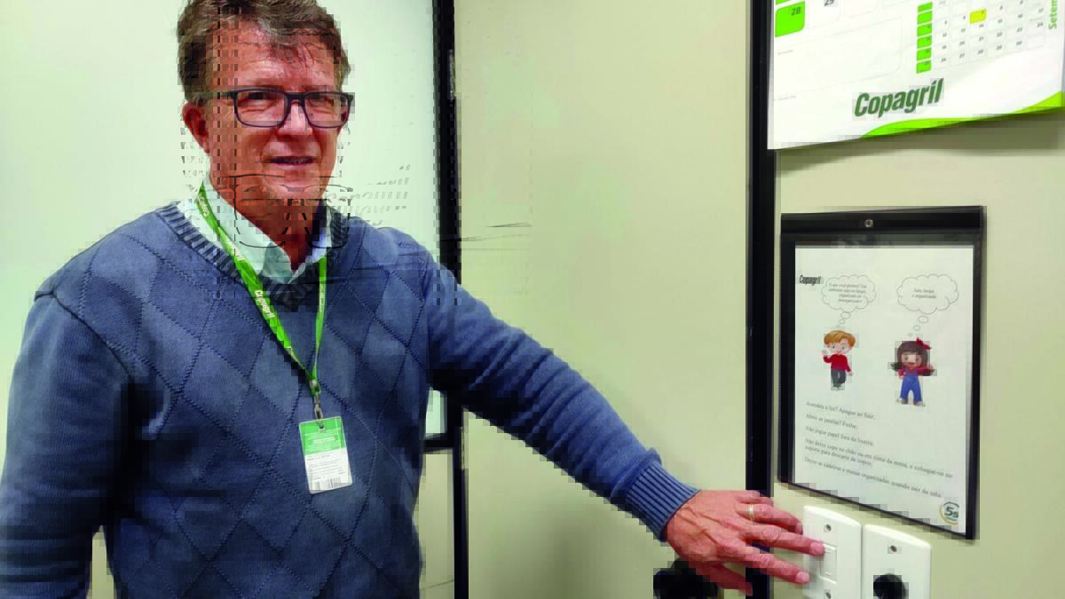 Para que a conta de luz da Copagril seja cada vez menor, hábitos diários são motivados para os funcionários. “Temos um plano de ação que busca uma redução do consumo de energia elétrica em 10% para este ano. É uma proposta do setor de gestão de energia e que foi ratificada pela diretoria. Estimulamos os funcionários a desligarem a luz de suas salas quando não há ninguém dentro dela, o mesmo devendo acontecer com os equipamentos elétricos, exceto os aparelhos de ar-condicionado que precisam ser utilizados com racionalidade. Com a ajuda de todos vamos conseguir economizar mais energia elétrica”, enaltece o assessor Ambiental e de Engenharia.