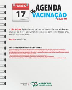 A agenda de vacinação contra a Covid-19 tem continuidade nesta quinta-feira (17) em Marechal Cândido Rondon.