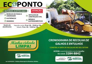 O calendário completo de recolha está disponível em http://marechalrondon.com.br/recolha/. Mais informações podem ser obtidas pelo telefone (45) 3284-8842.