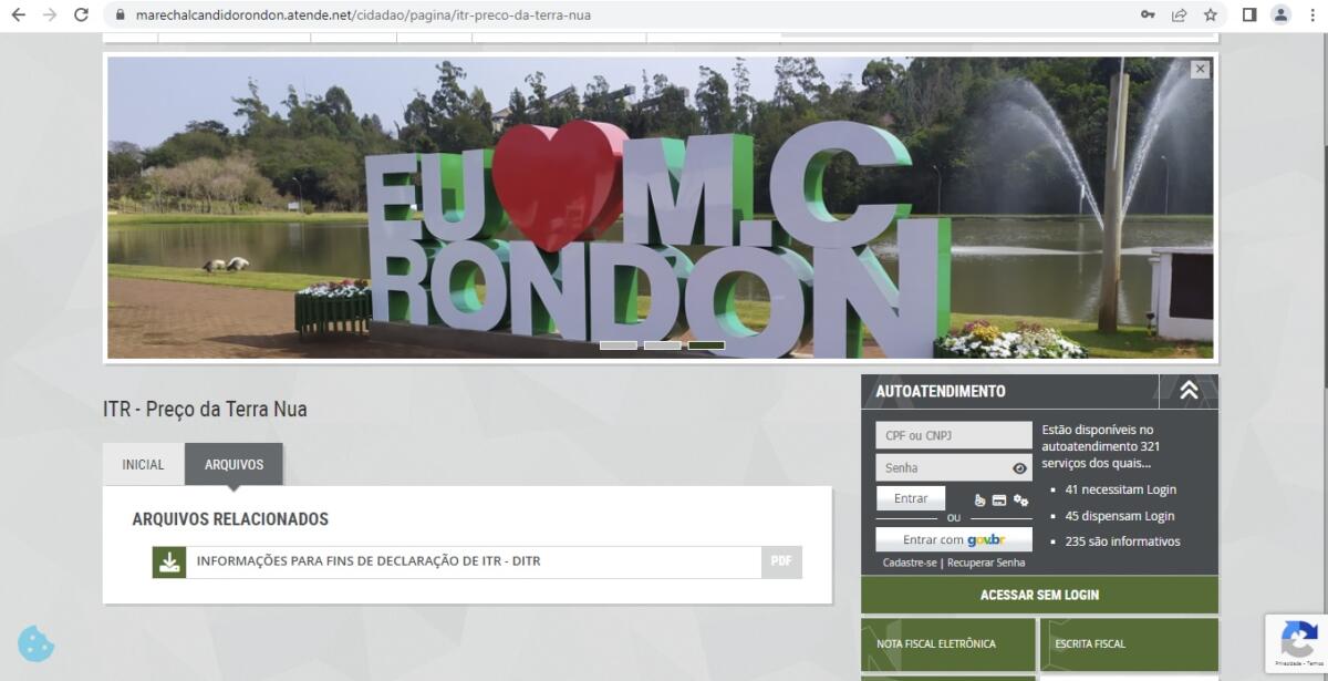 A prefeitura de Marechal Cândido Rondon, através da Secretaria de Fazenda, possui convênio com a Receita Federal para fiscalizar o imposto. Em contrapartida, o município recebe 100% do valor recolhido. Além disso, a prefeitura disponibiliza assessoria especializada em ITR para orientar os proprietários rurais obrigados a declarar.