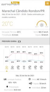 Previsão do Simepar para Marechal Cândido Rondon: