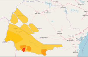A Defesa Civil emitiu, por volta das 13h30 desta quinta-feira (24), um aviso para chuvas intensas, vendavais e raios na região Oeste e Sudoeste do Paraná. Os eventos devem ser de severidade moderada.