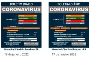 Compare os dois últimos boletins da Covid-19 divulgados em Marechal Rondon: