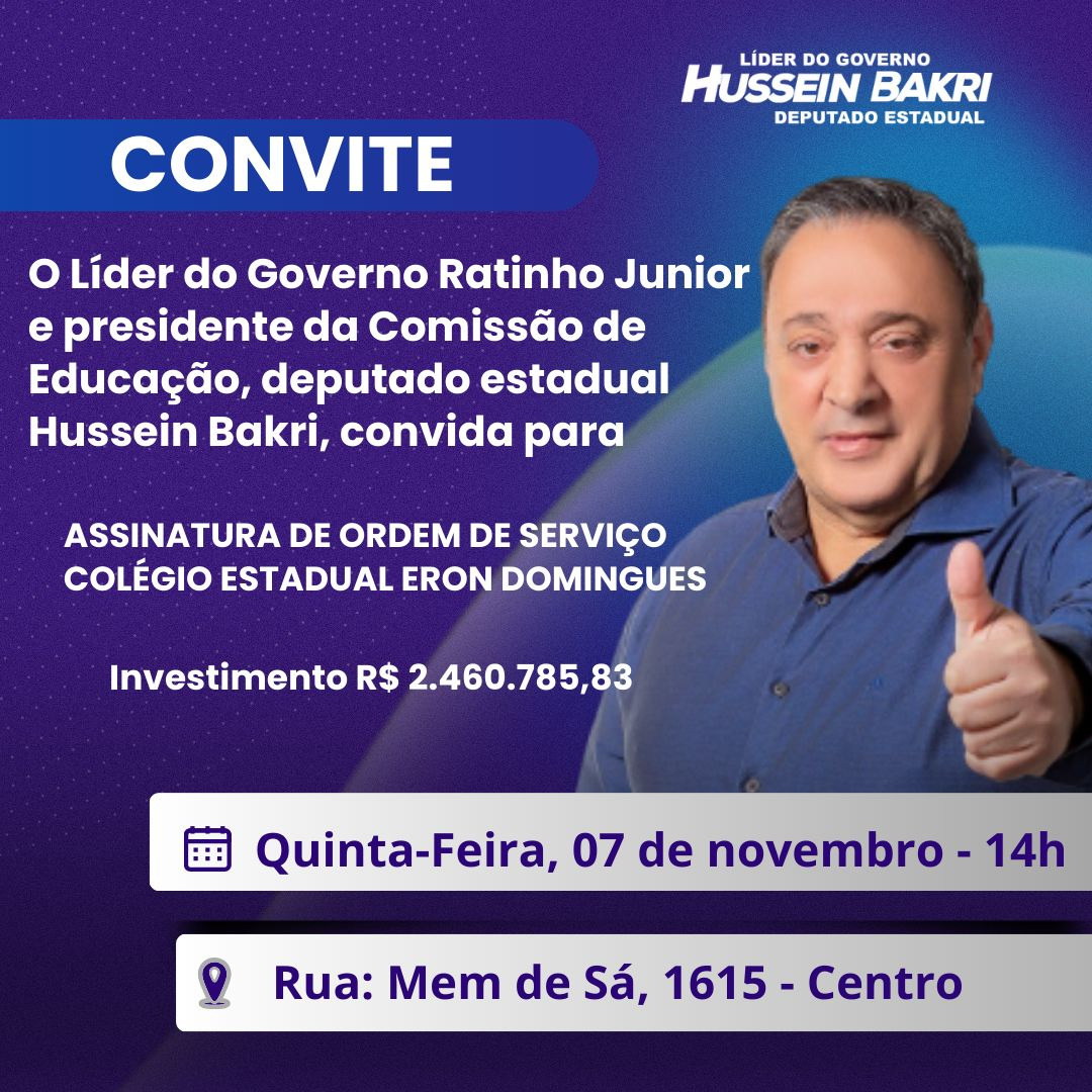 Estará presente para fazer o anúncio, o líder do governo Ratinho Junior, e presidente da Comissão de Educação, deputado estadual Hussein Bakri, principal ator para a liberação dos recursos para Marechal Rondon.