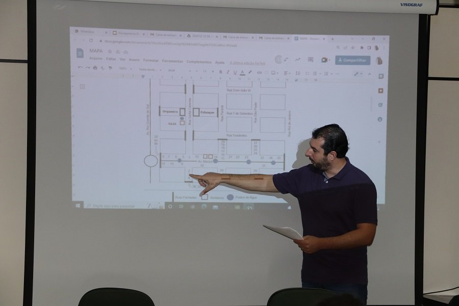 Estiveram presentes à reunião de hoje, os representantes de entidades parceiras; presidente da Comissão Central Organizadora da Expo Rondon 2022, Anderson Loffi; diretor-presidente da Fundação Promotora de Eventos (Proem), Claudio Köhler; secretários de Educação, Fernando Volpato, de Cultura, Júnior Niszczak, e de Esporte e Lazer, Diogo Schneider; e as responsáveis pela coordenação do desfile, Emanuellen e Márcia, da Secretaria de Educação.