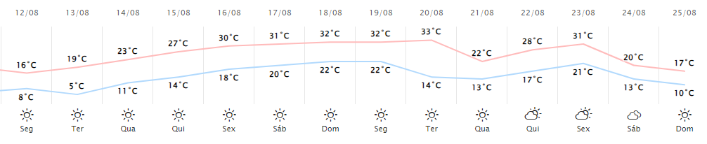 Confira a previsão do tempo para os próximos dias em Marechal Rondon, conforme o Simepar: