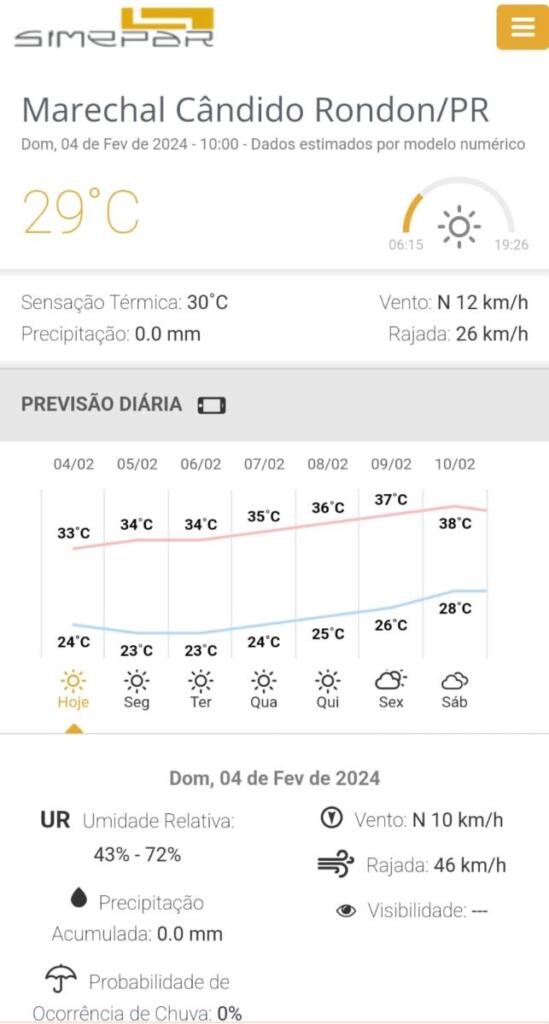 Previsão do tempo para Marechal Rondon nos próximos dias: