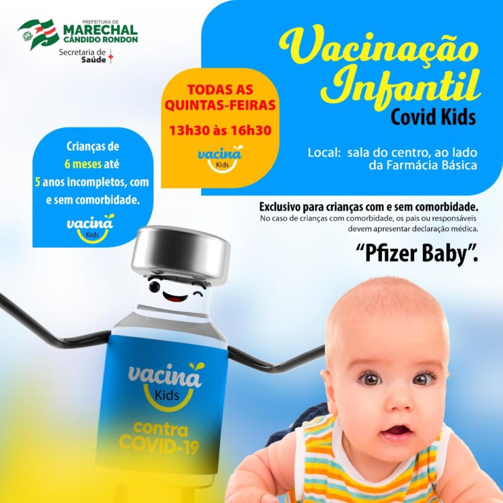 A vacina Covid Kids ocorre todas as quintas-feiras, das 13h30 às 16h30, tendo por local a sala do centro, ao lado da Farmácia Básica. Nos postos de saúde dos distritos, o imunizante é ofertado mediante agendamento. Os pais ou responsáveis devem apresentar declaração médica de comorbidade.