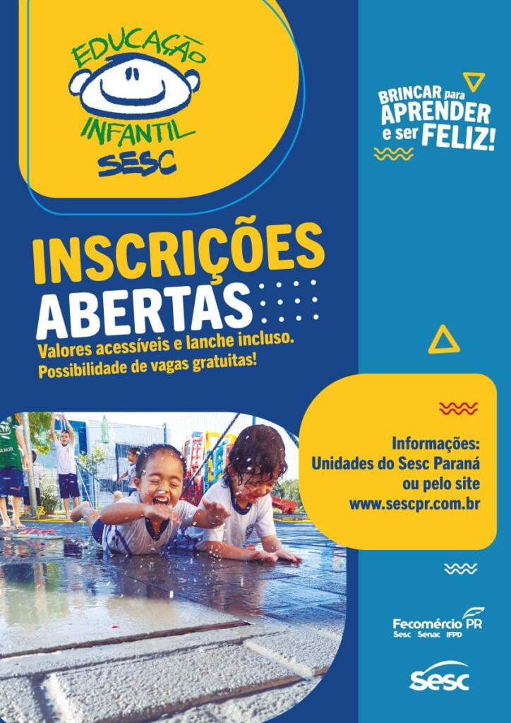 A Educação Infantil do Sesc está com as inscrições abertas até a próxima semana. Na unidade de Marechal Cândido Rondon, há 95 vagas disponíveis e, tendo em vista as rematrículas já realizadas, aproximadamente 50 estão disponíveis ao público.