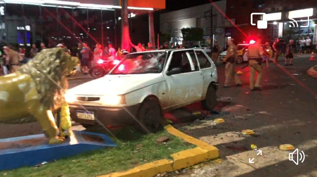 O Uno acabou batendo contra a estátua do Lions Clube.