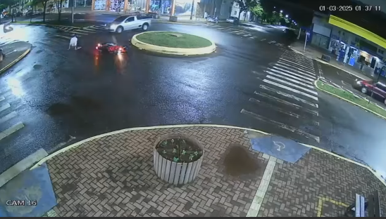 As câmeras de segurança de uma empresa de Marechal Cândido Rondon flagraram dois acidentes na madrugada de sábado (1º) em um intervalo menor de 10 minutos.