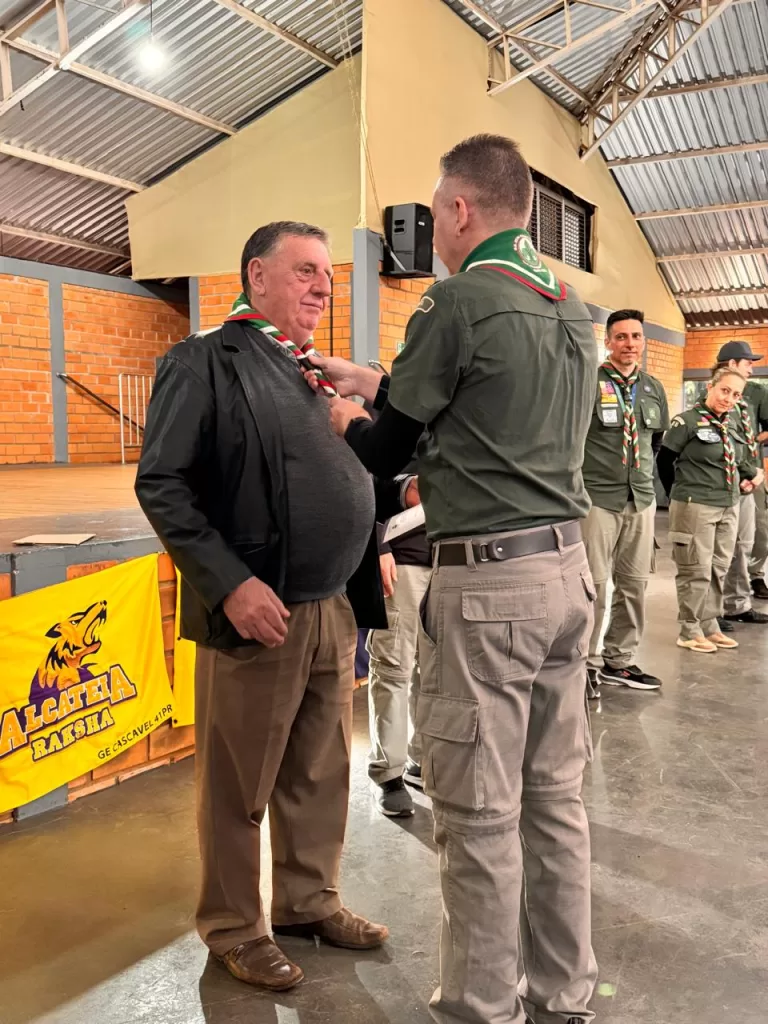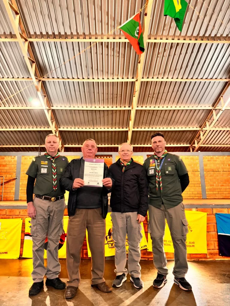 Um dos pontos altos do evento foi a entrega do Diploma de Mérito ao senhor Ireneo Kühl, em reconhecimento aos seus relevantes serviços prestados ao escotismo. Senhor Ireneo é um dos fundadores do Grupo Escoteiro 25 de Julho, criado em 03 de março de 1978, e que se tornou o 11º Grupo Escoteiro do Estado do Paraná. A homenagem emocionou os presentes, destacando a importância da memória e do legado deixado por aqueles que dedicaram suas vidas à formação de crianças e jovens por meio dos valores escoteiros.