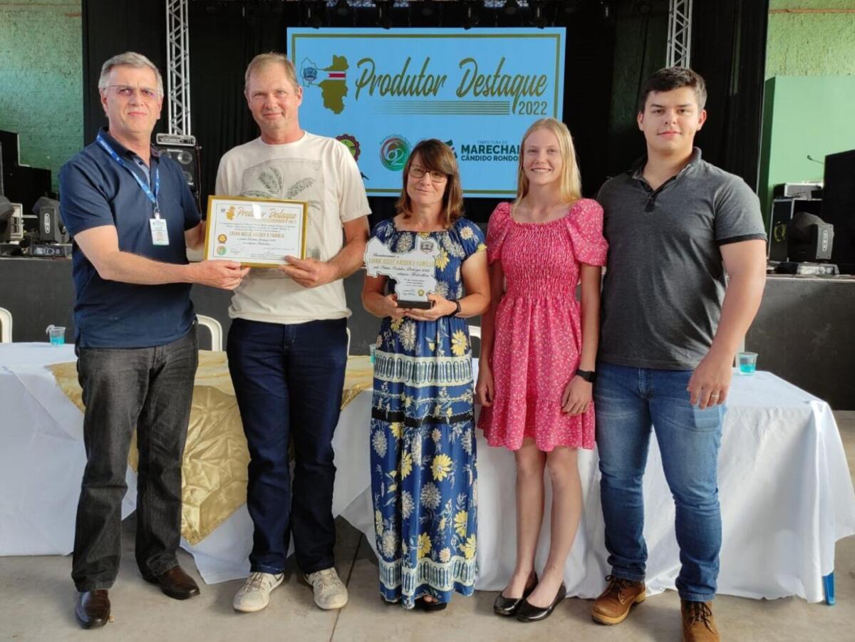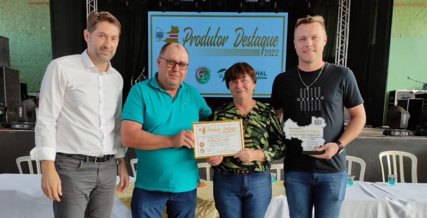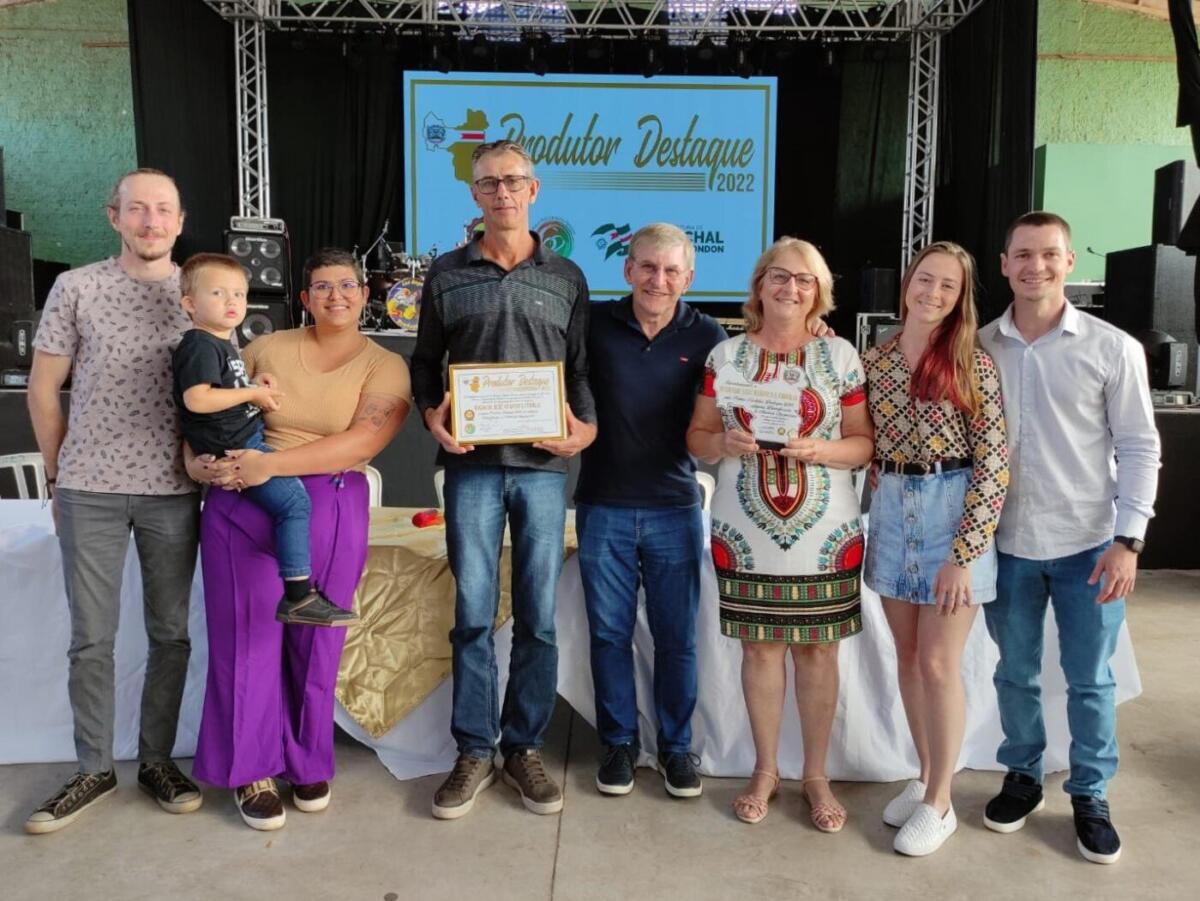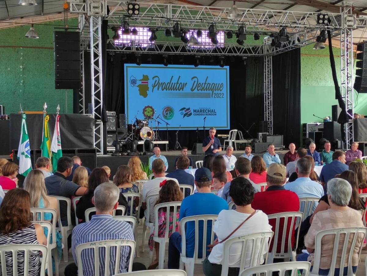 Aconteceu na manhã desta segunda-feira (25), na Casa Cultural do Parque de Exposições de Marechal Cândido Rondon, a cerimônia de entrega do Prêmio Produtor Destaque 2022. O Prêmio, organizado pelo Conselho Municipal de Desenvolvimento Agropecuário (CMDA), integrou a programação da Expo Rondon.