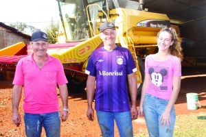 Produtor Edson Neunfeld, ao lado da filha Maiara e do ajudante Valdir Tusset: “No ano passado a previsão para o início da safra de verão era de pouca chuva, mas acabou chovendo bastante. Esperamos que este ano aconteça a mesma coisa” (Fotos: Sandro Mesquita/OP)