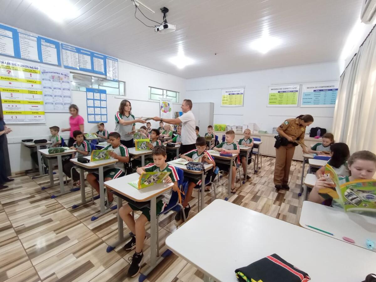 Alunos do 5º ano da Escola Municipal Presidente Costa e Silva, de Margarida, assistiram na manhã desta sexta-feira (12), à aula inaugural do Programa Educacional de Resistência às Drogas e à Violência (Proerd). Trata-se do início dos trabalhos no ano de 2024 em Marechal Cândido Rondon.