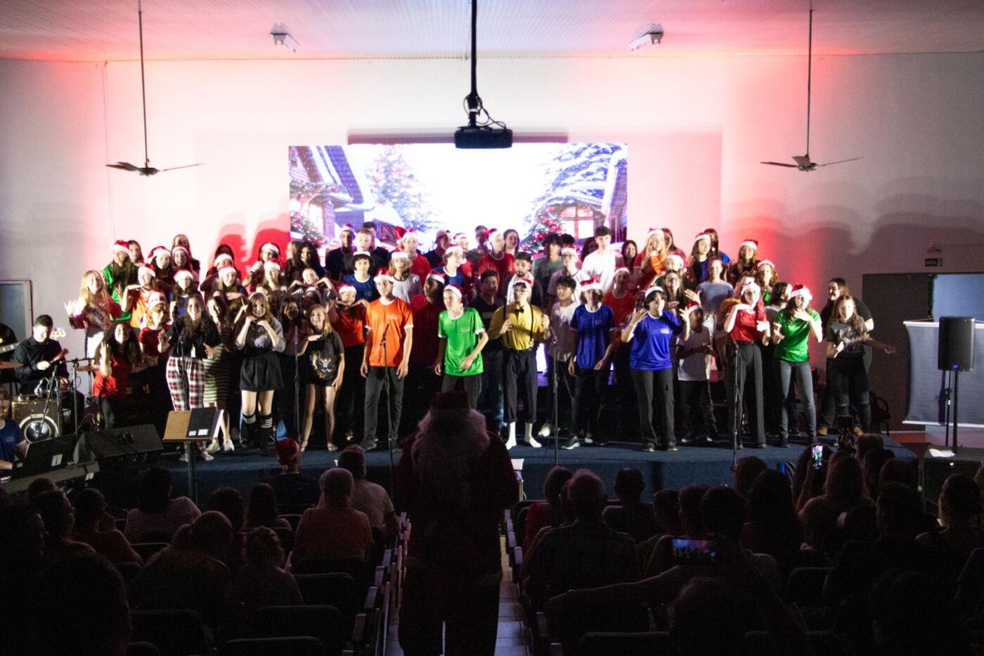 O espetáculo encantou o público com uma performance emocionante, repleta de harmonias vocais e espírito natalino. O coro, composto por jovens talentosos, transmitiu a magia da temporada de festas por meio de músicas cativantes e apresentações envolventes, deixando uma marca inesquecível na comunidade e familiares presentes.