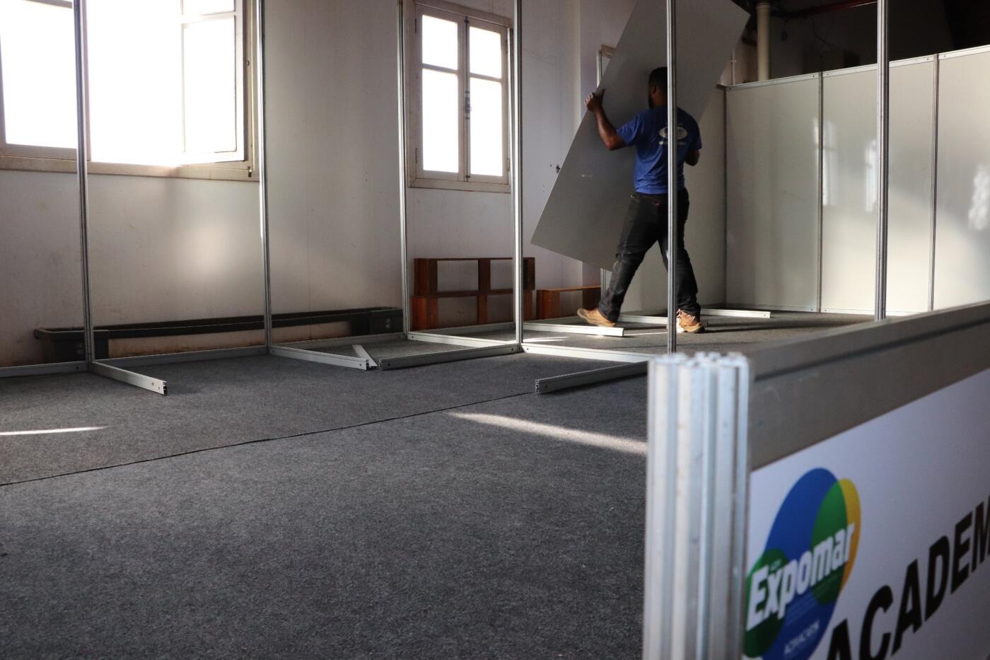 A previsão é de que os estandes básicos estejam montados até o fim desta semana para que, na próxima semana, seja iniciada a montagem dos estandes projetados/diferenciados.