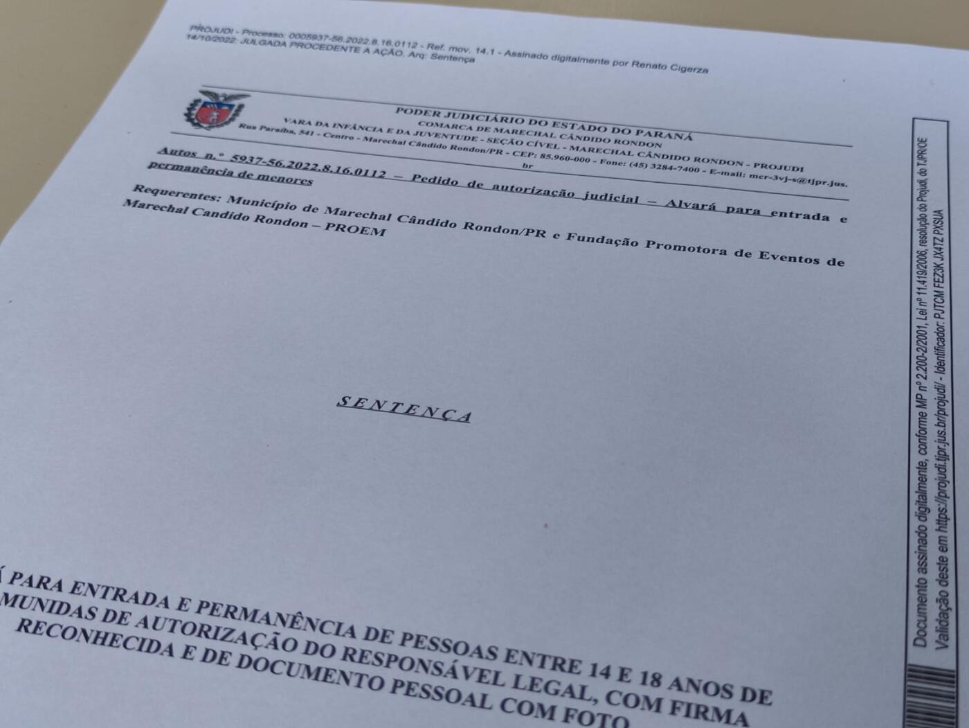 O juiz de direito da Vara da Infância e da Juventude, Seção Cível, de Marechal Cândido Rondon, Renato Cigerza, expediu sentença onde regulamentou a participação de menores de 18 anos na Oktoberfest 2022, que acontece nesta semana, quinta-feira (20), sexta-feira (21) e sábado (22). O pedido foi feito pela prefeitura e pela Fundação Promotora de Eventos (PROEM), responsáveis pela tradicional festa realizada no município.