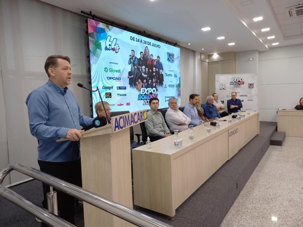 Durante ato realizado na manhã desta sexta-feira (21), na Associação Comercial e Empresarial (Acimacar), ocorreu o lançamento da Expo Rondon 2024. O evento para celebrar com chave de ouro os 64 anos de emancipação de Marechal Cândido Rondon, será realizado de 24 a 28 de julho, no parque de exposições.