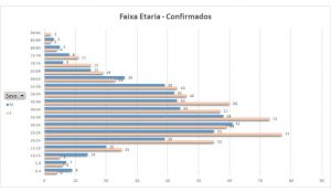 Faixa etária de homens e mulheres que contraíram Covid-19 neste ano em Marechal Rondon (Fotos: Reprodução)