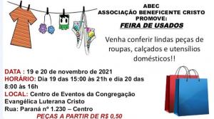 Nesta sexta-feira (19) e sábado (20), ocorre mais uma edição da Feira de roupas, calçados e utensílios da Associação Beneficente Cristo (ABEC), de Marechal Cândido Rondon.