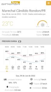 CONFIRA A PREVISÃO PARA MARECHAL RONDON, CONFORME O SIMEPAR: