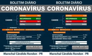 Compare os dois últimos boletins da Covid-19 divulgados em Marechal Rondon: