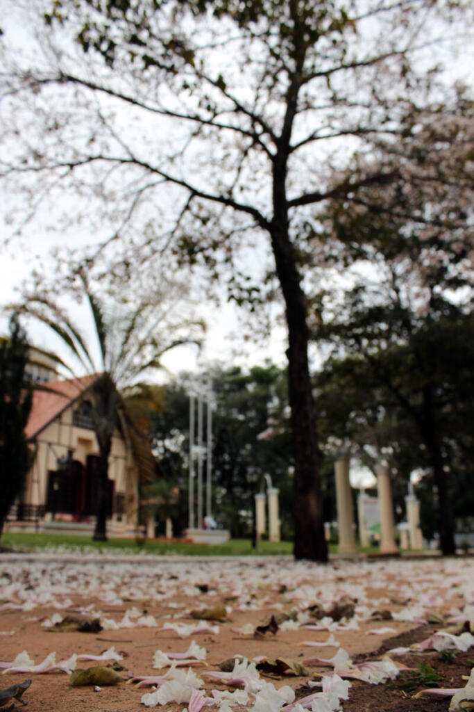 Em Marechal Cândido Rondon, as ruas estão tomadas pela beleza do ipês-brancos. Caracterizadas pela floração tardia, as espécies de cor branca anunciam que a primavera se aproxima.
