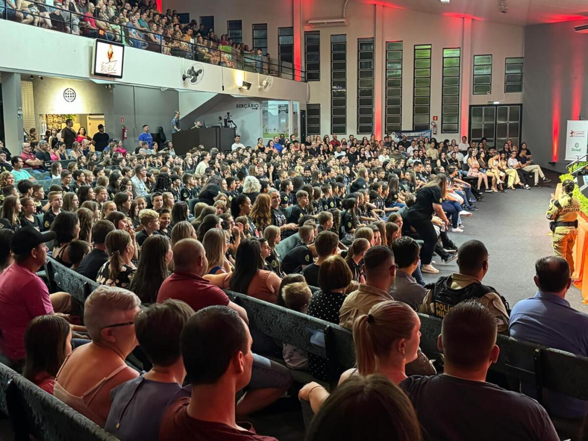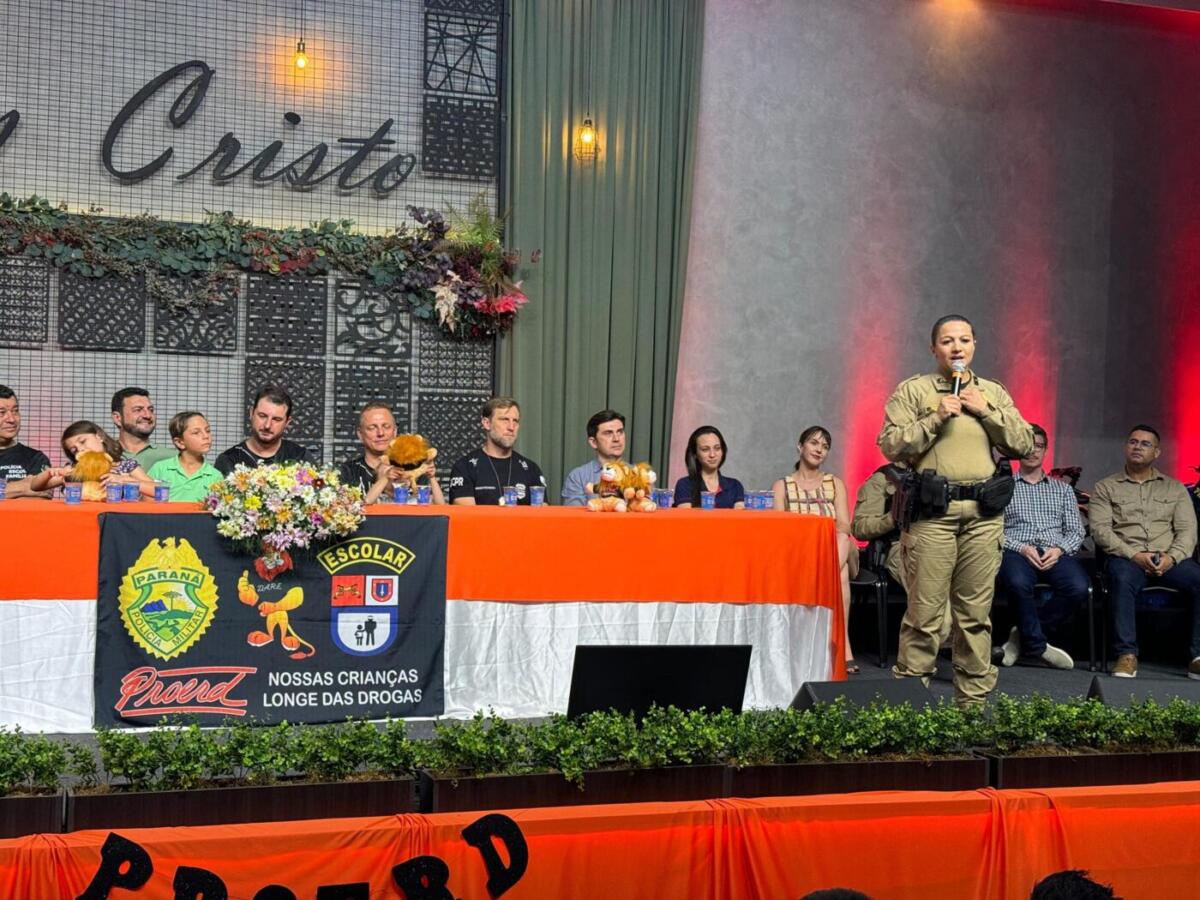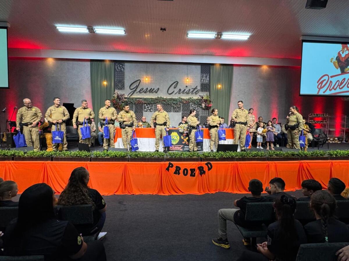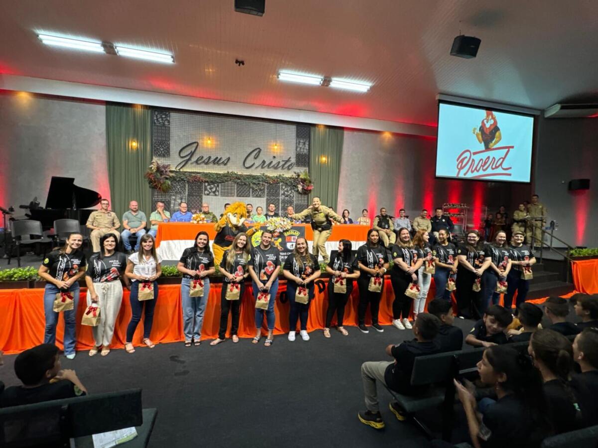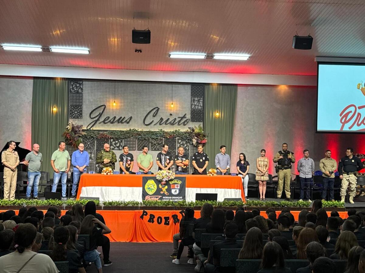 Estudantes de turmas de 4º e de 5° anos de escolas municipais e de colégios da rede privada receberam, nesta noite de terça-feira (19), durante cerimônia realizada no Auditório Ecos da Liberdade, em Marechal Cândido Rondon, os certificados de formatura do Proerd (Programa Educacional de Resistência às Drogas e à Violência).