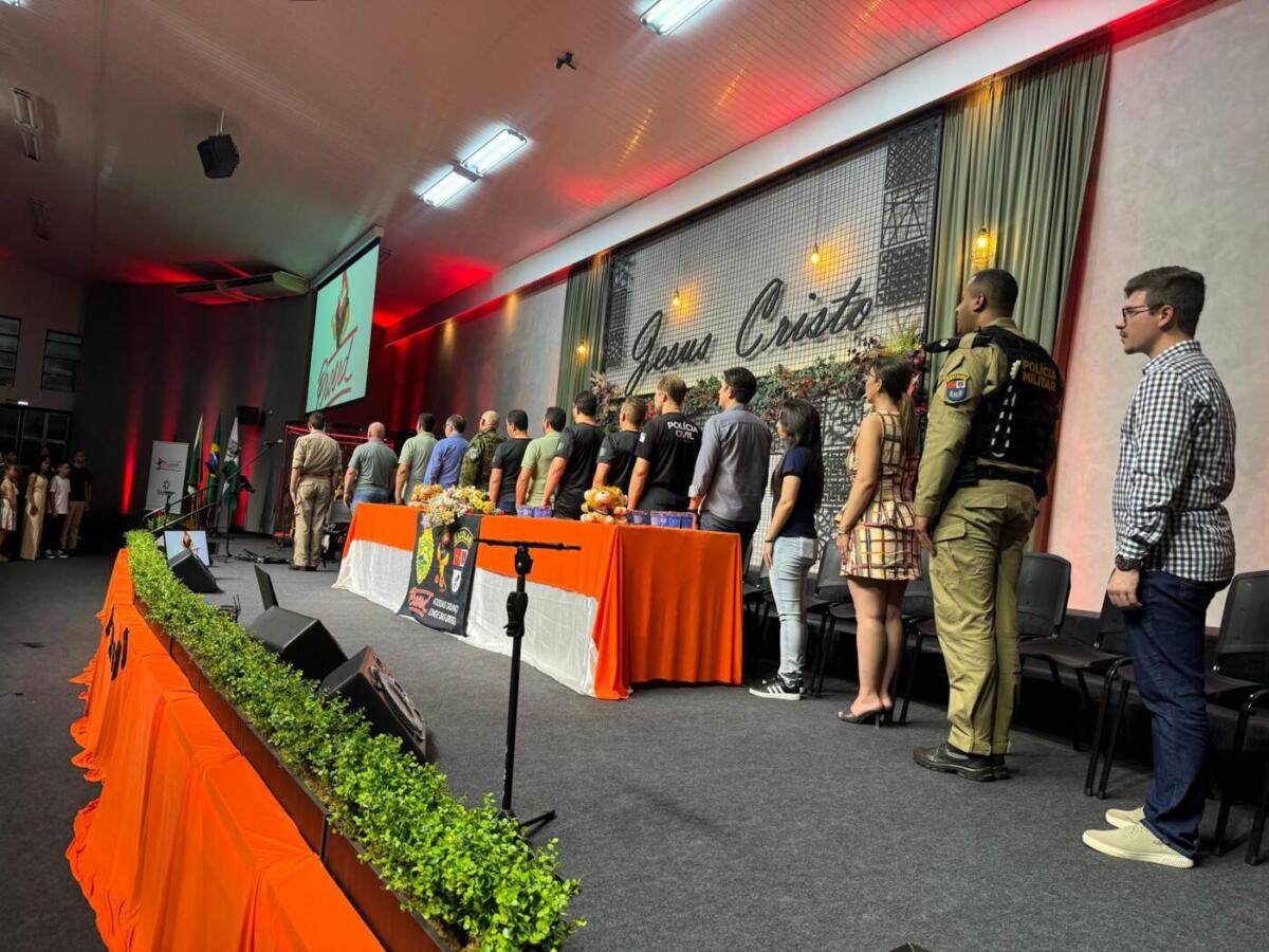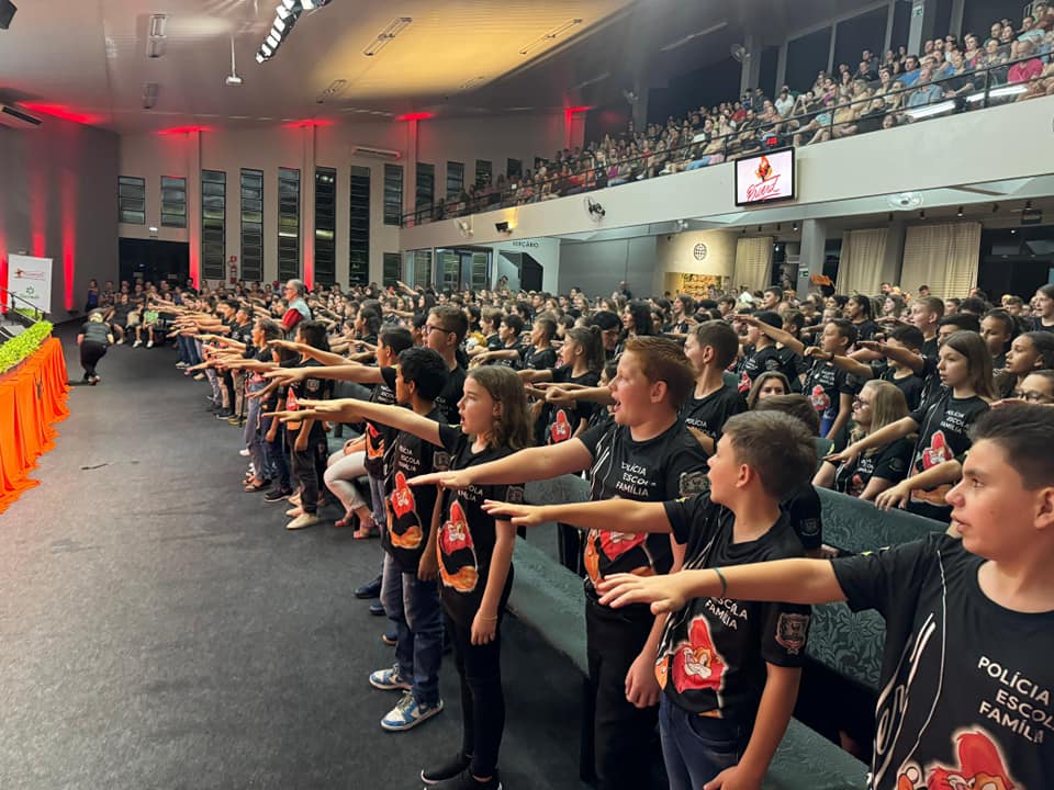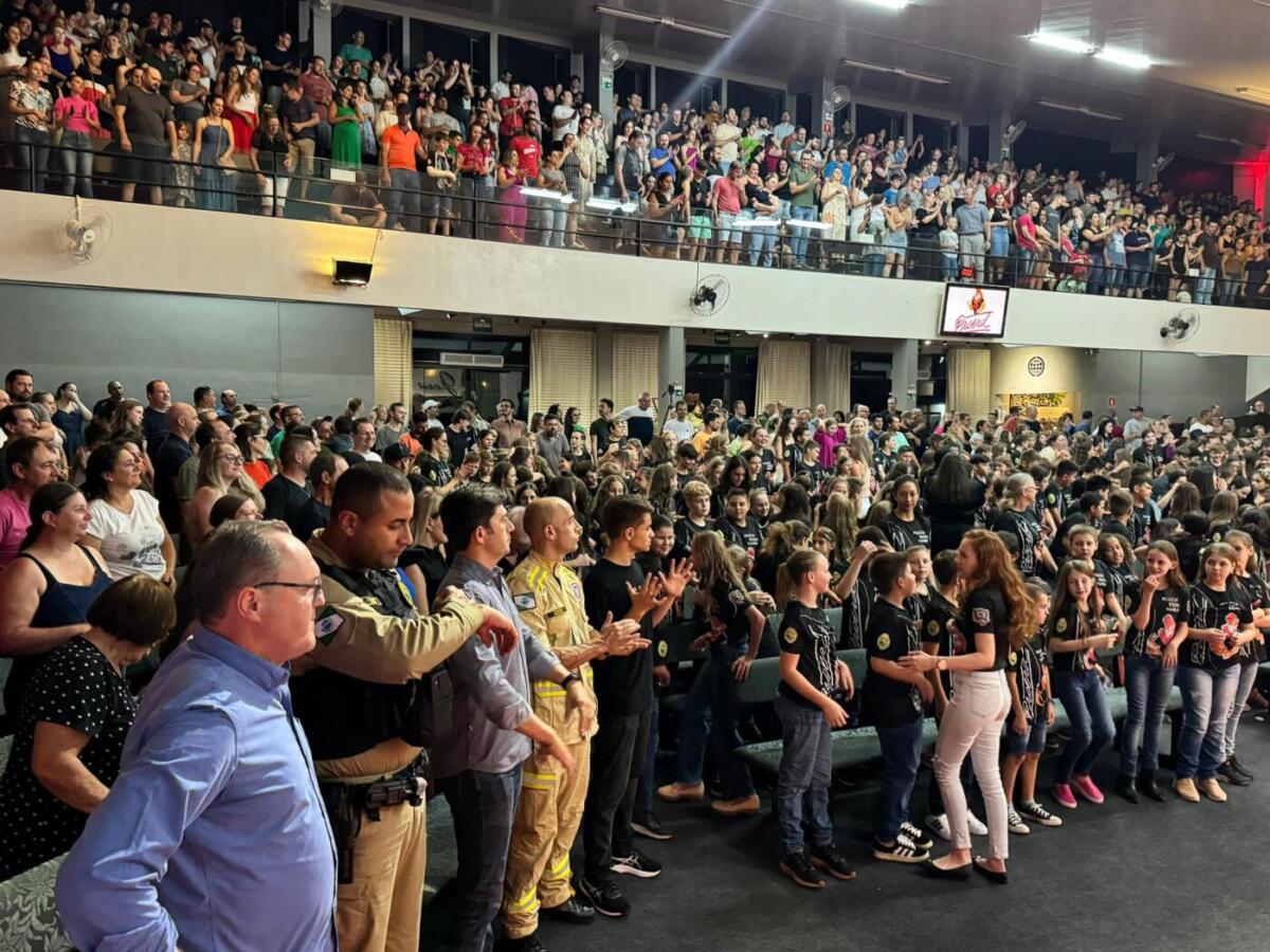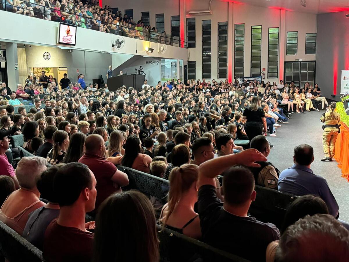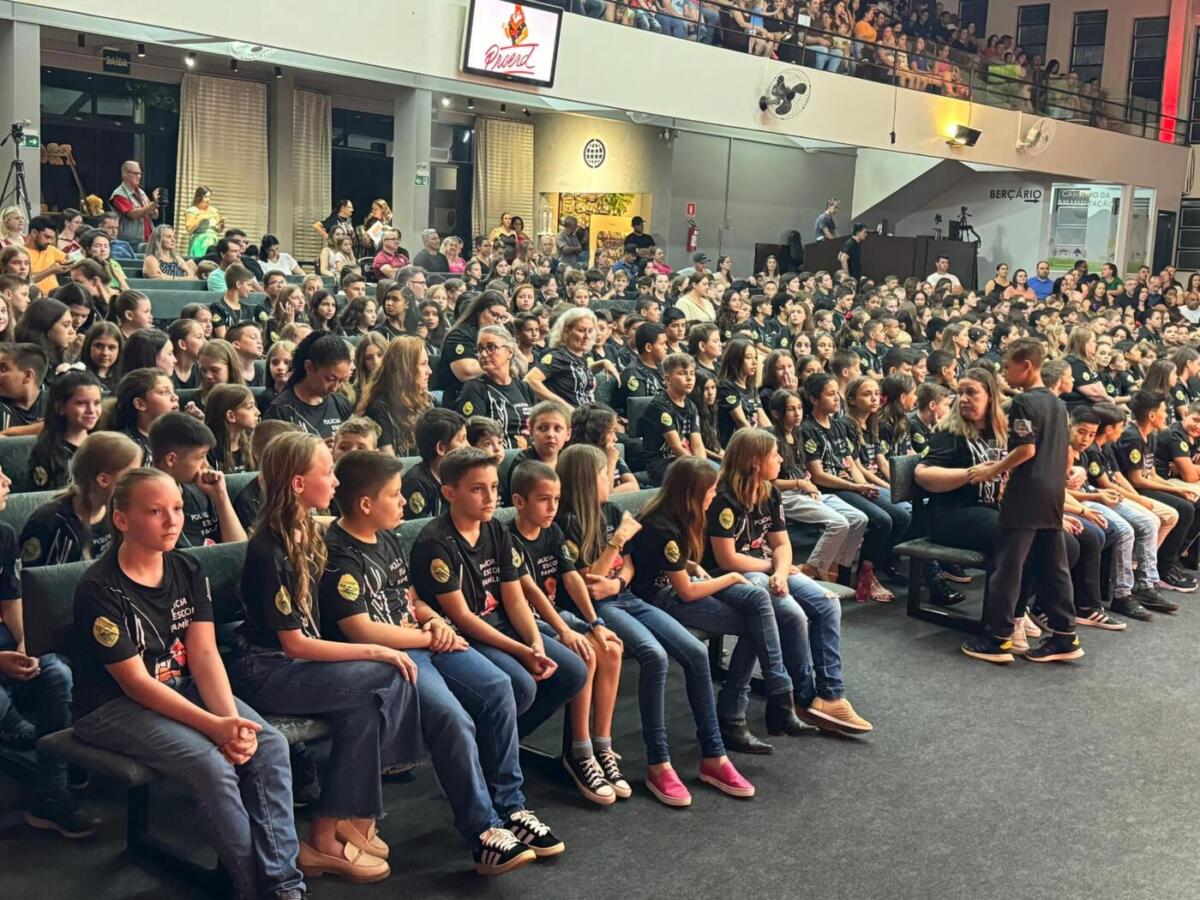 Estudantes de turmas de 4º e de 5° anos de escolas municipais e de colégios da rede privada receberam, nesta noite de terça-feira (19), durante cerimônia realizada no Auditório Ecos da Liberdade, em Marechal Cândido Rondon, os certificados de formatura do Proerd (Programa Educacional de Resistência às Drogas e à Violência).