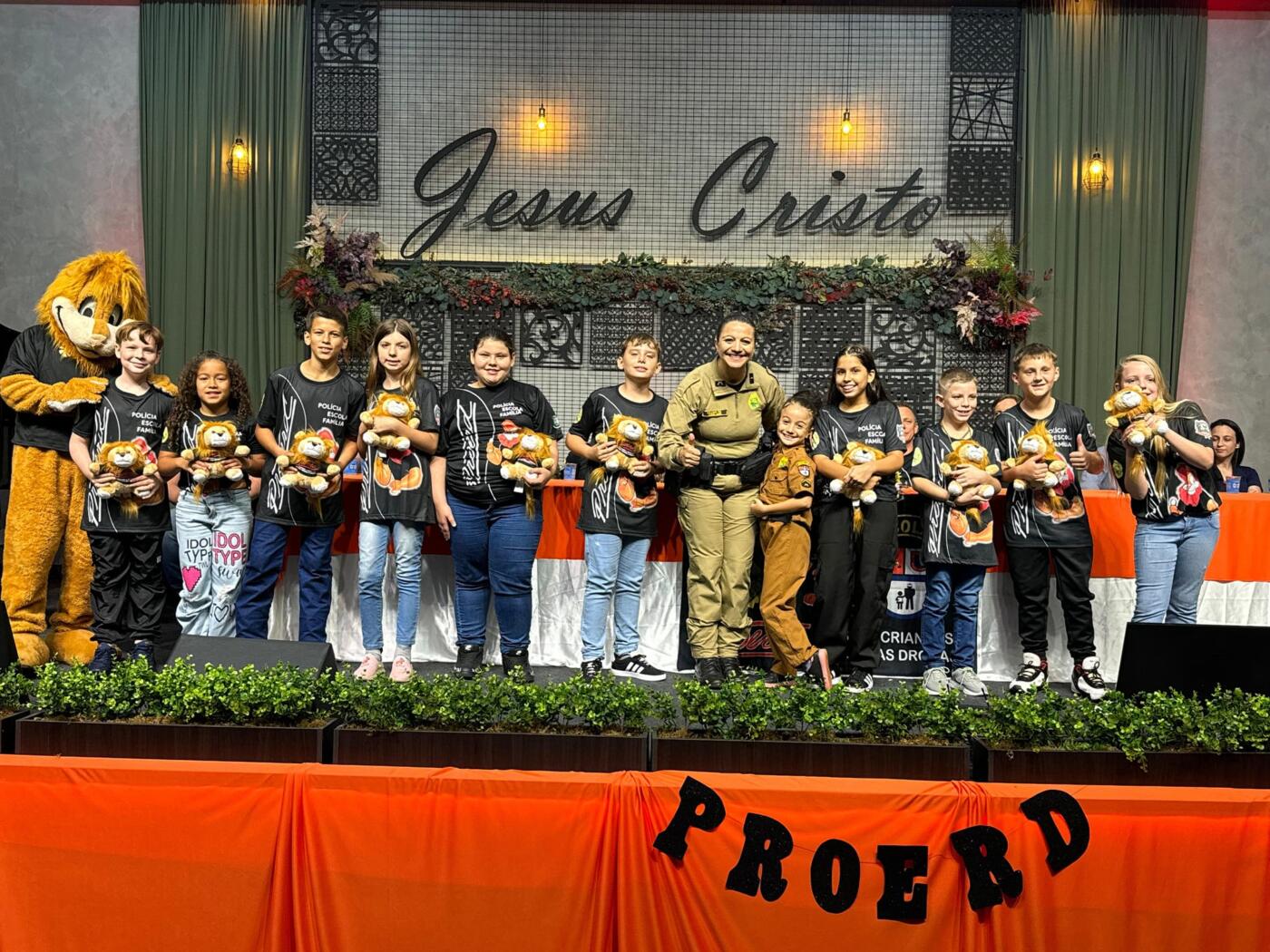 Estudantes de turmas de 4º e de 5° anos de escolas municipais e de colégios da rede privada receberam, nesta noite de terça-feira (19), durante cerimônia realizada no Auditório Ecos da Liberdade, em Marechal Cândido Rondon, os certificados de formatura do Proerd (Programa Educacional de Resistência às Drogas e à Violência).