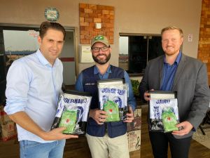 Camiseta e demais presentes foram entregues por Juliano Bortolon e prefeito Marcio Rauber em confraternização (Fotos: Divulgação)